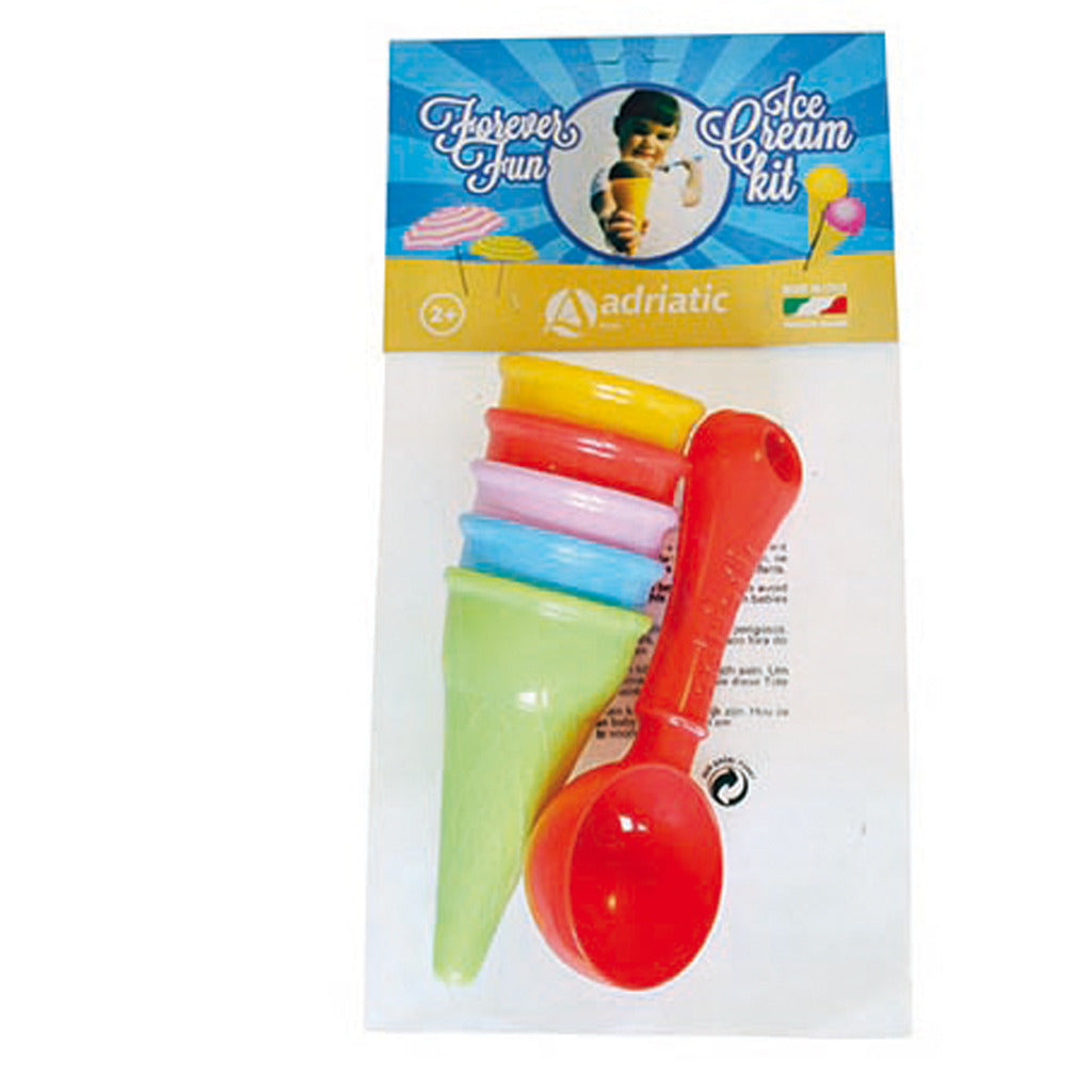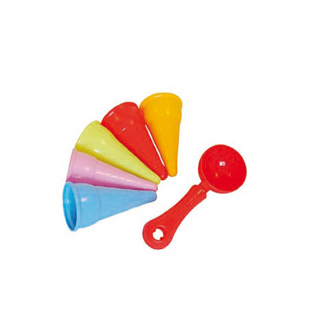 Schep bolletjes zand op en zet ze daarna op de ijscohoorntjes. Je kunt hiermee maar liefst vijf zandijsjes maken! 'Eet' ze alleen op of nodig je vriendjes en vriendinnetjes uit.