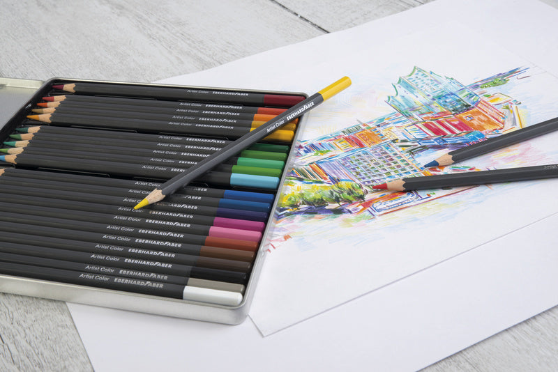 Bliketui met mooi assortiment Artist Color kleurpotloden. De zeskantige kleurpotloden zijn watervast. Stiftdoorsnede is 3,8mm.