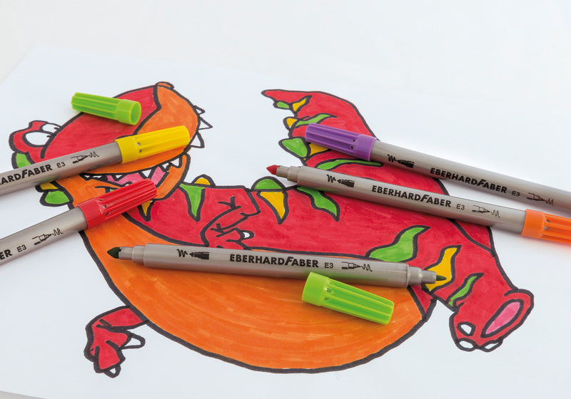 Viltstiften Eberhard Faber duo. 2 punten: 0,8 mm en 1-3mm. Etui à 10 kleuren.