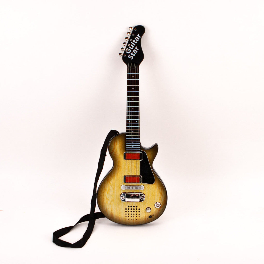 Laat jouw muzikale talent horen met deze gave elektrische gitaar met stoere licht- en geluidseffecten! Sla de schouderband over je schouder en begin te spelen! De gitaar werkt op 3x AA batterijen (niet inbegrepen). Geschikt voor kinderen vanaf 10 jaar.
