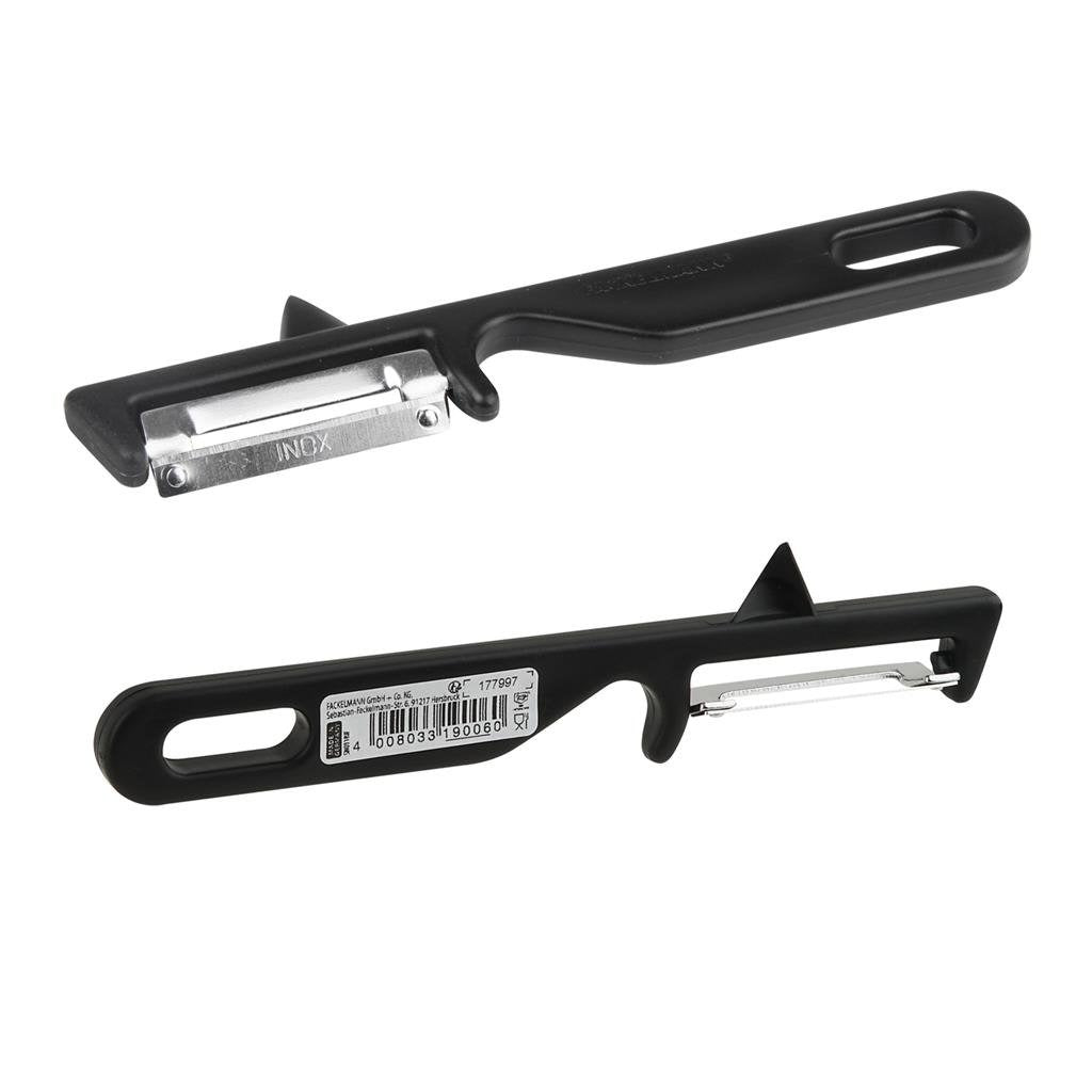 Dunschiller van Fackelmann. De greep is gemaakt van PP en het lemmet is van roestvrij staal. In de kleur zwart.