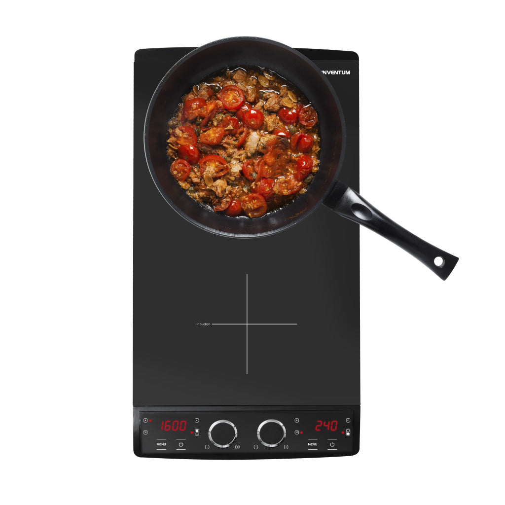 Heeft een vermogen van 2900 watt. Het is een 1-fase kookplaat: stekker in het stopcontact en koken maar! De inductiekookplaat heeft voor beide kookzones 10 temperatuur- en vermogenstanden. De temperatuur kan ingesteld worden van 60 tot 240°C. De inductiekookplaat is voorzien van een instelbare timer tot 180 minuten en is gemakkelijk te bedienen door middel van de tiptoetsen en draaiknoppen.