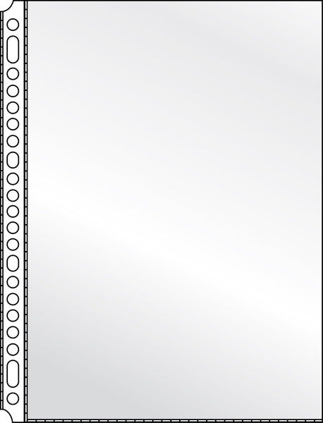 Standaard kwaliteit showtas van PP 80 micron, geschikt voor formaat A4, generfde uitvoering, copysafe en antistatisch. Bovenzijde open en de ponsgaten zijn met een witte strook versterkt. 23-gaats. Doos à 4x25 stuks