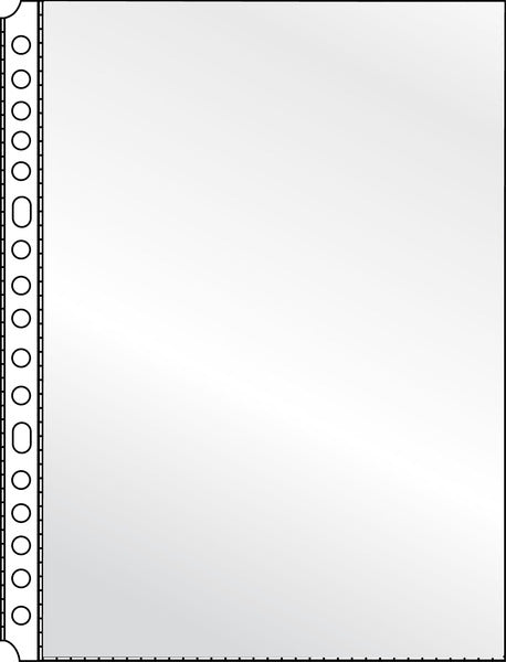 Zware kwaliteit showtas van PP 120 mµ, geschikt voor formaat A5, gladde uitvoering, copysafe en antistatisch. Bovenzijde open en de ponsgaten zijn met een witte strook versterkt. 17-gaats. 10x10 stuks.