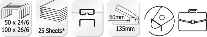 Handige tafelnietmachine voor ieder bureau. Geïntegreerde metalen ontnieter. Kunststof body met metalen mechanisme. Bovenlaadmechanisme voor snel herladen. Opberg ruimte voor nietjs. Capaciteit maximaal 25 vel. Passend bij perforators 'Trendy'.