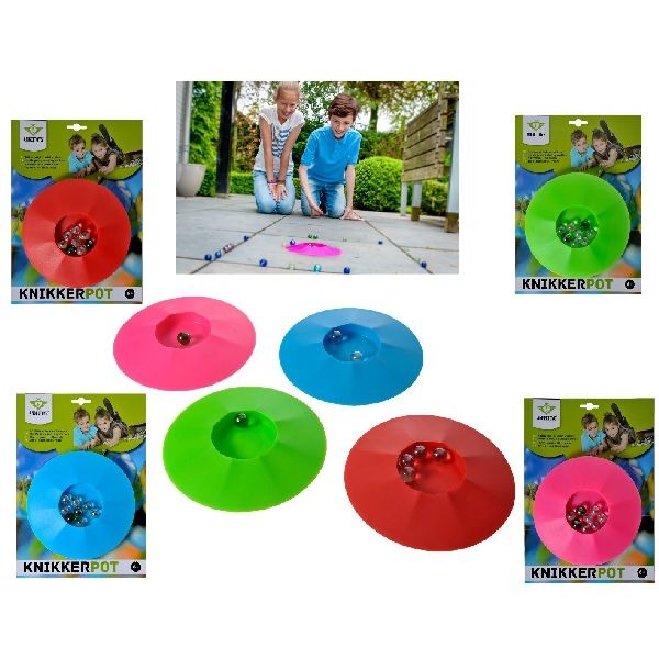 Knikkerpot in gele kleurstelling, Ø 17 cm inclusief 6 knikkers. Verkrijgbaar in meerdere kleuren. U kunt niet kiezen, maar ontvangt een willekurige kleur.