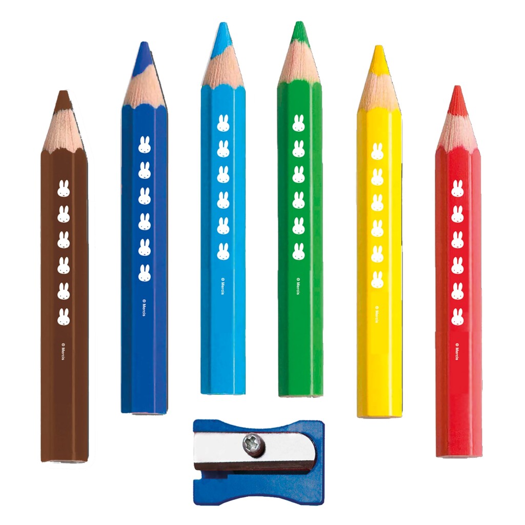 Deze extra dikke, korte Nijntje kleurpotloden zijn speciaal gemaakt voor gebruik door de allerkleinsten. De set bestaat uit 6 potloden in heldere kleuren en een speciale slijper. Gebruik voor het slijpen de bijgevoegde puntenslijper, dat geeft nog langer plezier van de kleurpotloden. Geschikt voor kinderen vanaf 3 jaar.