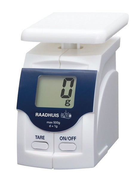 De nauwkeurig metende digitale brievenweger is wit van kleur en heeft een capaciteit van 500 gram. 1 gram nauwkeurig. Exclusief 2 AA batterijen.
