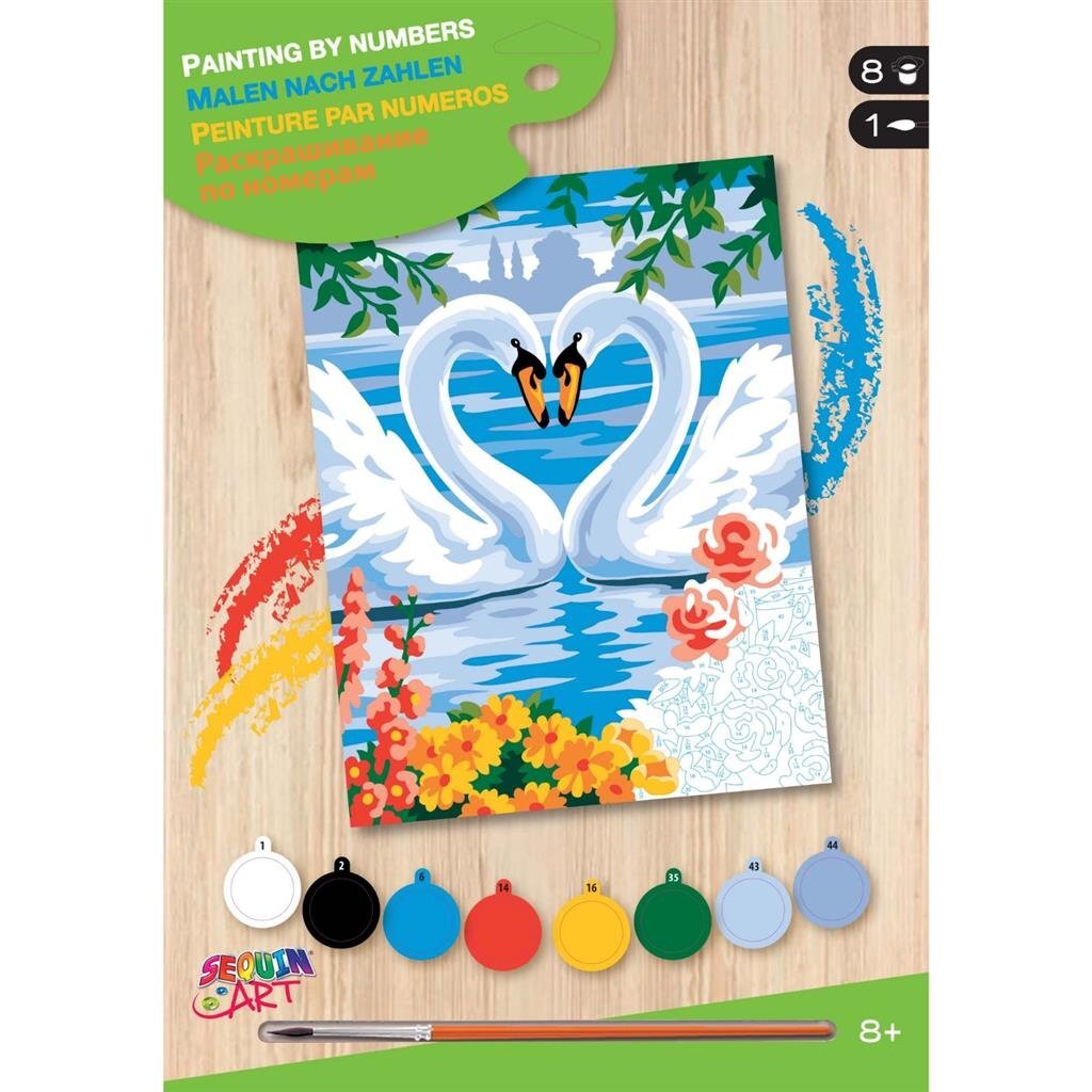 Met schilderen op nummer maak je zelf heel makkelijk een mooi schilderij! Kijk goed naar het nummer van het vakje dat je wilt kleuren. Zoek vervolgens de verfkleur met het bijbehorende nummer en schilder het vakje in die kleur. Als je alle vakjes hebt ingekleurd, heb je een prachtig schilderij van 2 zwanen!