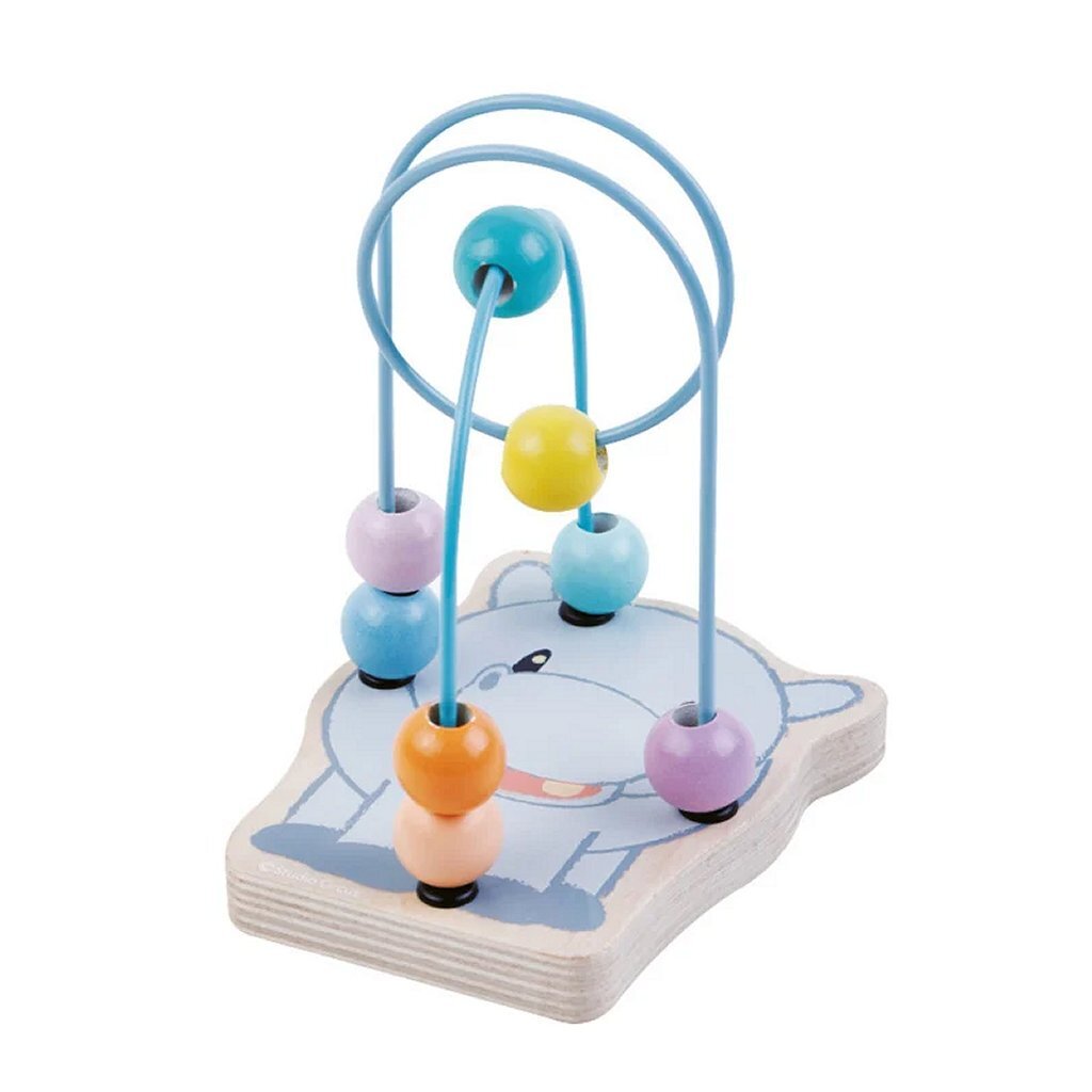 Kleine handen vinden hun weg door het dradendoolhof en duwen de gekleurde kraaltjes naar elk uithoekje. Alles naar de andere kant geschoven? Dan begint de kralenpret weer van voren af aan! Met een stevige houten basis en vrolijke kleuren. Bevorderd de fijne motoriek, oog-handcoördinatie, herkennen van kleuren en tellen.