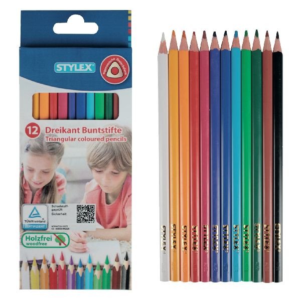 Stylex Driehoekige Lange Kleurpotloden 12stuks