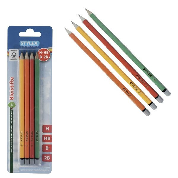 Stylexpotloden, in 4 verschillende hardheden: H – Hb – B – 2B. Vervaardigd van FSC–hout.
