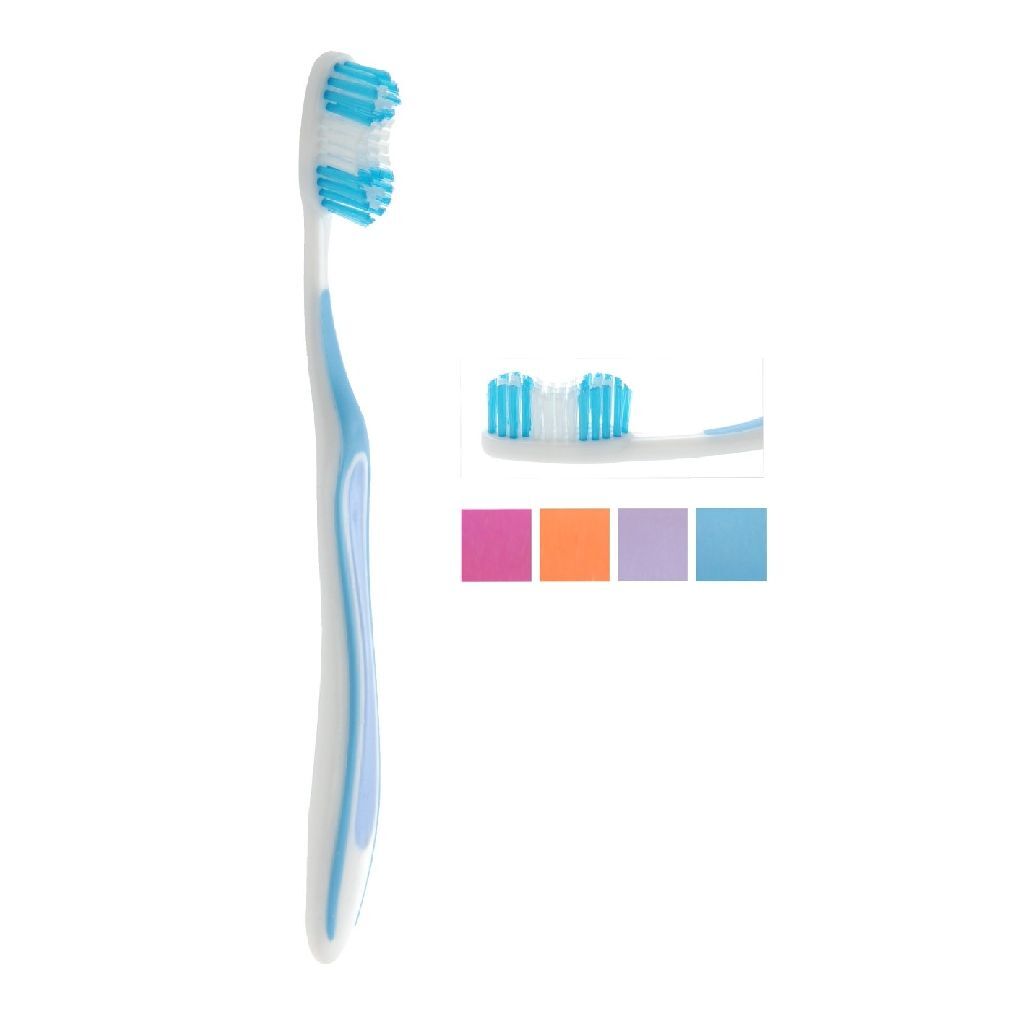 Goed in de hand liggende tandenborstel met medium harde haren. In verschillende kleuren: blauw, paars, oranje en roze.