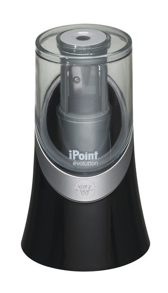 Puntenslijper op batterij en start automatisch. Met Microban-technologie. Geleverd op blisterkaart met Euroloch. Kleur zwart. Deze puntenslijper werkt op 4 AA batterij (niet bijgeleverd). Batterij GP Super Alkaline (GP-15A) wordt geadviseerd voor deze puntenslijper.